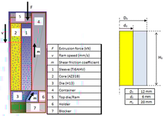 - Fernández, D.; Rodríguez-Prieto, A.; Camacho, A.M. Effect of Process Parameters and Definition of Favorable Conditions in Multi-material Extrusion of Bimetallic AZ31B-Ti6Al4V Billets. Appl. Sci. 2020, 10, 8048. [Google Scholar] [CrossRef]