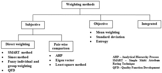 - Odu, G.O. Weighting Methods for Multi-Criteria Decision Making Technique. J. Appl. Sci. Environ. Manag. 2019, 23, 1449–1457. [Google Scholar] [CrossRef]