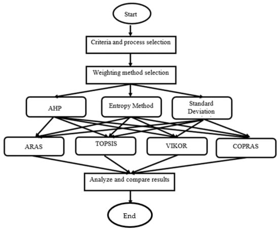 - Ghaleb, A.M.; Kaid, H.; Alsamhan, A.; Mian, S.H.; Hidri, L. Hindawi Assessment and Comparison of Various MCDM Approaches in the Selection of Manufacturing Process. Adv. Mater. Sci. Eng. 2020, 2020, 4039253. [Google Scholar] [CrossRef]