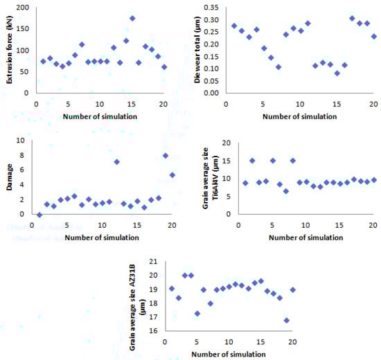 Finally, in order to evaluate the wear of the die and the dynamic recrystallization the Archad’s model [,,] and the Johnson–Melh–Avrami–Kolmogorov (JMAK) model [,], respectively, were implemented in the simulations.