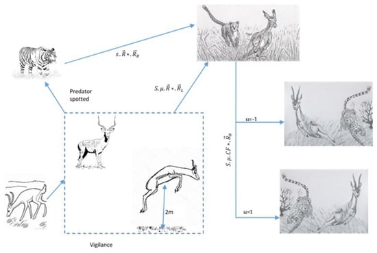 Equation (12) illustrates the computational formula of the gazelle’s behavior after spotting the predator.