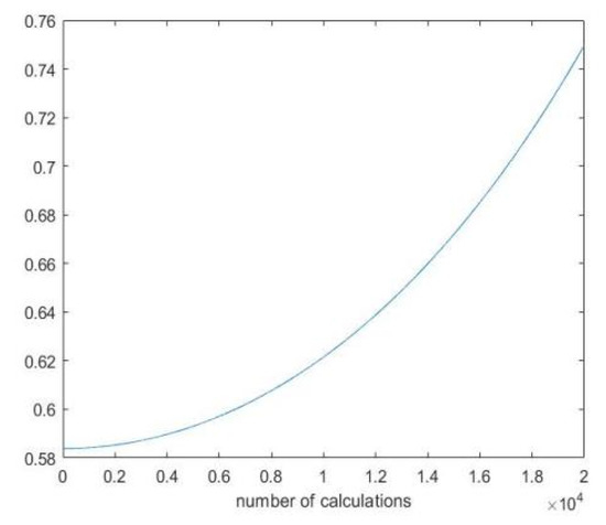 Figure 2 shows the change of c when the total times of objective function evaluation are set to 20,000. In fact, c controls the diameter of the spherical boundary. A slightly larger c at the later stage of iteration means that the spherical boundary becomes larger, and the individual can get closer to the global optima faster.
