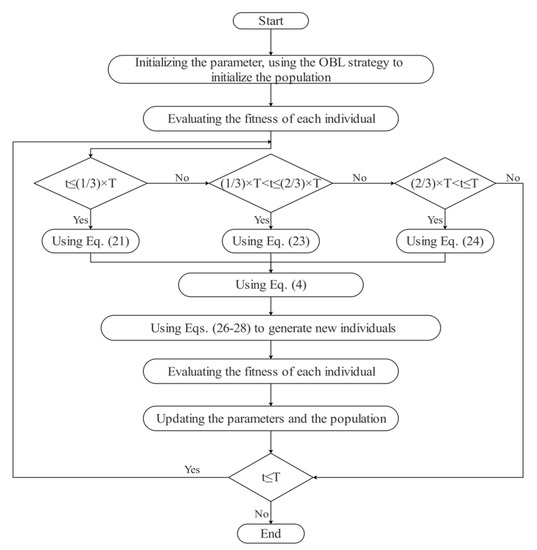 - The opposition-based learning strategy is used in the initialization phase, which can enhance the quality of the initial solution.