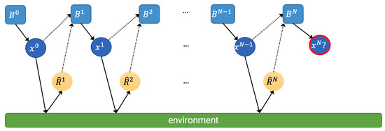 The internal state of the decision-making agent at time n, represented as beliefs () that contain sufficient information to make decision at time n, will evolve as the agent observe the resulting “decision–response” pair of into , which will contain the newest information extracted from the “decision–response” pair. For such a decision-making agent to learn the environment and find out the optimal decision-making rule, two properties are crucial: