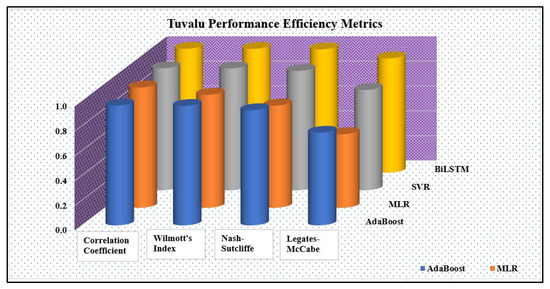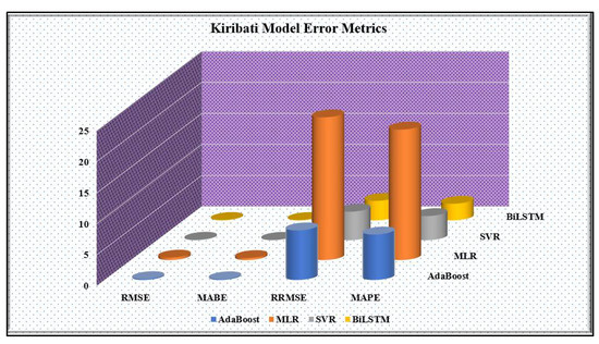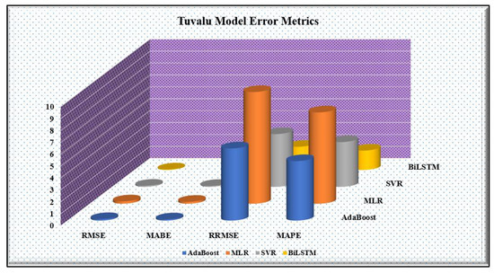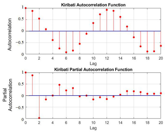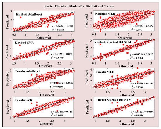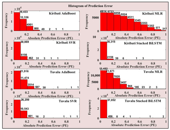 3.2. Scatterplot with Correlation and Histogram Error Results for Kiribati and Tuvalu Models