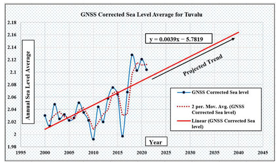4.4. GNSS-VLM-Corrected Sea Level Trend Analysis and Linear Projection