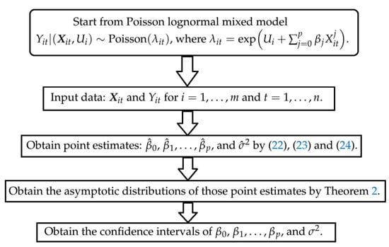 - The method discussed in [5] can only be applied to the Poisson lognormal mixed model with only one predictor, whereas the proposed method allows the model to have more than one predictor.