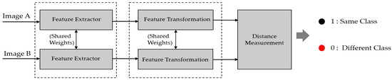 Figure 16) using the deep features extracted using pretrained CNNs. This value indicates that the contents of the two images are quite similar, even though they belong to two different classes. Using our proposed FS network, the distance between two input images is reduced to 0.01 (