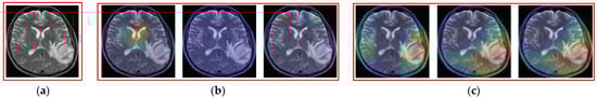 Figure 13c), whereas it uniformly analyzes the overall input image for making a decision on the input image belonging to the non-tumor class (