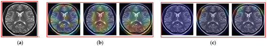Figure 14, the networks pay attention to the entire brain region for making decisions on the input image belonging to the non-tumor class, whereas they pay attention to some high-frequency regions such as the skull or brain boundary region to make decisions on the input image belonging to a tumor class. From these figures, we see that the MLP network pays attention to tumor regions or high-frequency regions for making decisions on input images belonging to the tumor region and pays uniform attention to the entire brain region to make decisions on input images belonging to the non-tumor class.