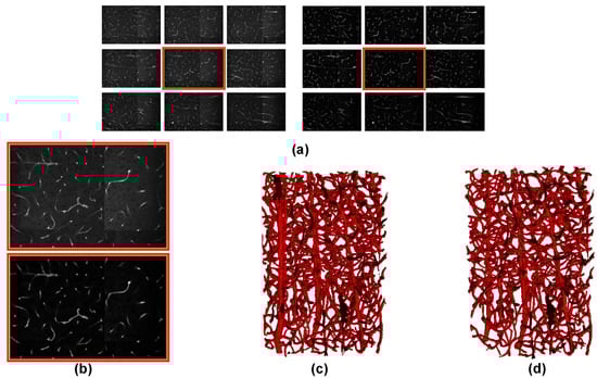 - Heinzer, S.; Kuhn, G.; Krucker, T.; Ulmann-Schuler, E.M.A.; Stampanoni, M.; Gassmann, M.; Marti, H.H.; Muller, R.; Vogel, J. Novel three-dimensional analysis tool for vascular trees indicates complete micro-networks, not single capillaries, as the angiogenic endpoint in mice overexpressing human VEGF(165) in the brain. NeuroImage 2008, 39, 1549–1558. [Google Scholar] [CrossRef][Green Version]
