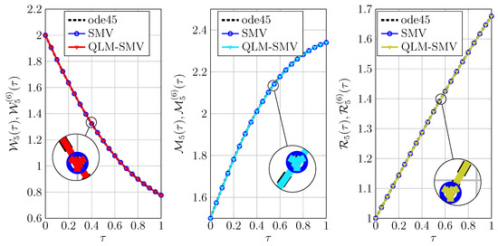 Comparisons of numerical solutions obtained via QLM-SMV in Test Case 2 with .