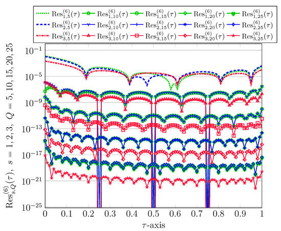 The results of error norms and the related order of convergences for two Test Case 1 and 2 are tabulated in Table 7. Here, we have used and various , . By looking at Table 7, it can be seen that the behavior of the obtained order of convergences is exponentially similar. This confirms the high-order accuracy of the QLM-SMV approach.