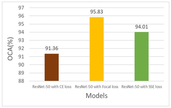 The effect of different loss functions of the DDSM test on overall classification accuracy.