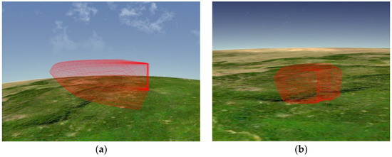 The cover zone mainly refers to the projected area of a weapon system’s kill zone on the ground according to the incoming direction of a ballistic missile; the projected area is capable of covering the defended target [36]. The cover zone model can be expressed by Equation (9).