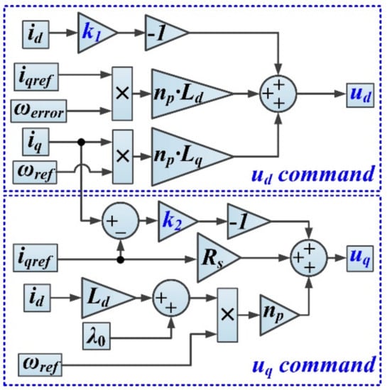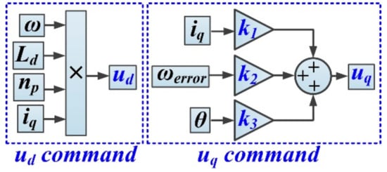 In order to stabilize the system, the control laws ud and uq can be chosen from Equation (32) in the following form [20,26]: