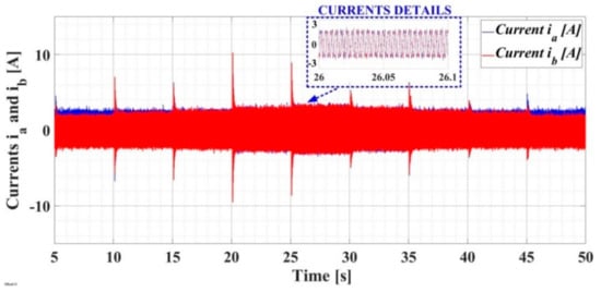 Real-time evolution of currents ia and ib for PMSM–CS–CI based on the LQR-type controller.