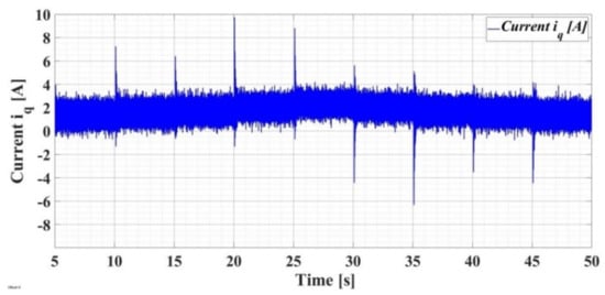 Real-time evolution of current iq for PMSM–CS–CI based on the LQR-type controller.