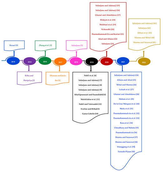 It was noted that there is a lack of research in the area of inventory management for growing items. However, recently the growing items are receiving attention in inventory management research. This type of item is an essential part of daily life as most serve as food in some supply chains, so having a better understanding of this kind of item enriches the knowledge in this new and significant field of inventory theory. The first time that a new class of inventory model for growing items was proposed by Rezaei [1]. The inventory models for growing items have been attracting researchers and academicians worldwide since 2014. Figure 1 shows the evolution of inventory models for growing items over time from 2014 to 2022. Rezaei [1] presented a general mathematical model for any of growing items and then for a specific type of poultry. Later, Ritha and Haripriya [2] proposed a mathematical model with shortages for growing items aimed at poultry products. Afterward Zhang et al. [3] studied the inventory management problems of growing items and developed an inventory model with this category of items considering carbon emissions. Subsequently, Dhanam and Jesintha [4] formulated a fuzzy inventory model for slow- and fast-growing items with deterioration in a single period, considering that the demand rate is random and the deterioration rate is constant. Next, Sebatjane [5] built three inventory models for growing items contemplating imperfect quality, two growing and storage facilities, and incremental quantity discounts. After that, Nobil et al. [6] introduced an economic order quantity (EOQ) inventory model for growing items. They examined an inventory system of poultries in which newborn items are fed to reach the ideal weight for consumers. The inventory model assumes that shortage is permitted, so consumers must wait for fresh items.