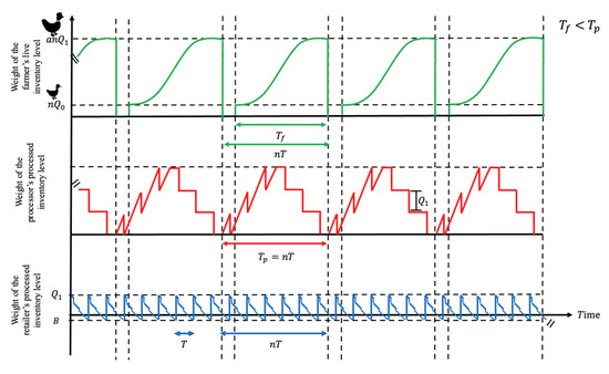 Faraudo Pijuan [40] made an inventory model to optimize the products’ inventory cycle and price, adapting it to the needs of the agricultural and livestock industry so that the products can grow, emit CO2 emissions and be of imperfect quality. Sebatjane and Adetunji [41] built a model for managing inventory in a three-echelon supply chain for growing items with distinct farming, processing, and retail operations under the assumption that the inventory has a specified expiration date. Sebatjane [42] proposed an inventory management strategy for a multi-echelon perishable food supply chain with growing and deteriorating items. This integrated inventory model optimizes the performance of the entire food supply chain with the impact of preservation technologies due to the perishable nature of food products. Abbasi et al. [43] optimized an EOQ inventory model, including products that can grow during replenishment, such as livestock. In addition, they assumed that the system’s products have a stochastic demand and that a specific part of them has a lower desired quality. Sharma and Mittal [44] analyzed an inventory model for growing items with trade credit that maximizes the total profit. Sharma and Saraswat [45] formulated two inventory models for the growing items under realistic aspects such as mortality and deterioration. One proposed inventory model considers permissible delay in payment, and another does not consider this. Table 1 provides a general overview of the inventory models for growing items available in the literature. To sum up, the majority fails to consider jointly the price-dependent demand, shortages, imperfect quality, mortality, carbon emissions, and supply chain with three stages.