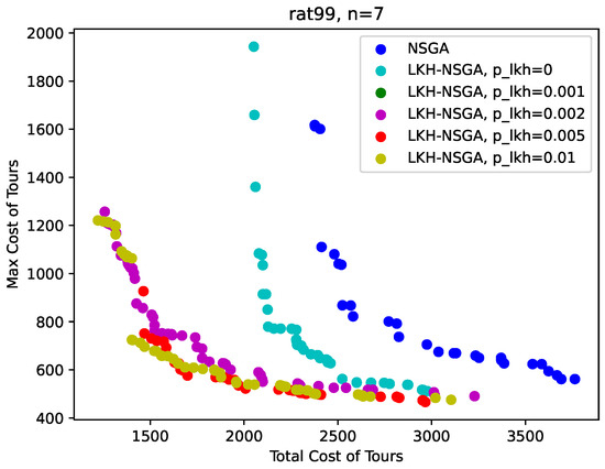 The Pareto fronts of LKH-guided NSGA with different guidance rate .