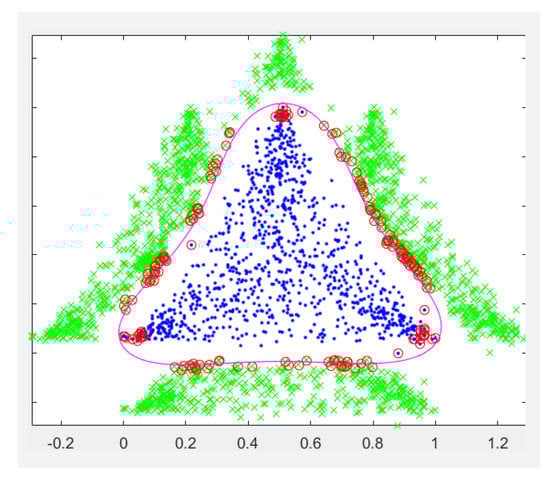 It can be proved that the number of points of shall not be less than the number of boundary points of the training set, , and when is very small, the difference between the volume of and the volume of is less than and the resulting can completely cover the training samples and reduce the space occupied by negative samples.