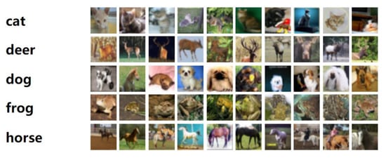 - Krizhevsky, A.; Hinton, G. Learning Multiple Layers of Features from Tiny Images. Technical Report TR-2009; University of Toronto: Toronto, ON, Canada, 2009. [Google Scholar]