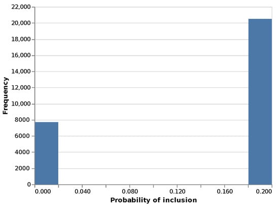 In the case of InfoES information, the most popular adjustment method in non-probability settings is propensity score adjustment [,,,,,]. This method, developed by [], can be used to estimate the distribution function, as described below.