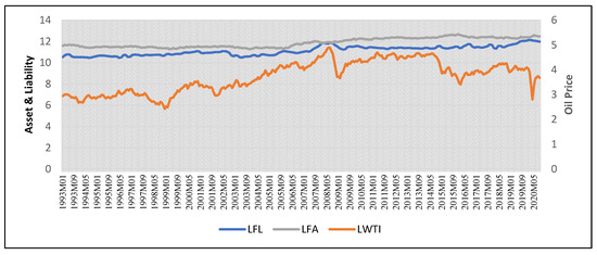 We utilized weekly data for the period of January 1993–June 2021. We employed foreign assets (FAs) and foreign liabilities (FLs) as the dependent variables and oil price as our independent variable. The description of variables is represented in Table 1.