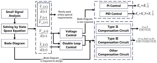 First, the transfer function of the circuit with small signal analysis is derived, and then the compensation circuit is designed by observing the Bode diagram of the transfer function. The design process is shown in Figure 4.