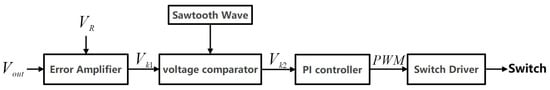 Without considering the current control, PI control is simple and efficient. It can basically achieve more accurate output, which shows in Figure 6. It processes the input signals actual output voltage and ideal output voltage , and then outputs the signal a, which adjusts the switching frequency of the switch transistor Q in order to minimize the difference between and .