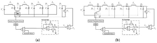In order to achieve the above high-voltage DC, many methods can be used [9]. Step-up DC–DC converters are one of most popular methods to directly pump up DC voltage. They can be divided into isolated boost circuits and non-isolated boost circuits. The isolated boost circuit is suitable for a situation requiring an isolated power supply [10,11,12], but the disadvantages are the large volume of the transformer and electromagnetic interference. Non-isolated boost circuits have many different structures, and the traditional boost circuit is one of the most popular boost cirucits with a simple structure. However, it has the drawback of a limited voltage gain. The rise of the duty ratio will lead to higher operating temperature of the switch, causing damage and failure of the switch.