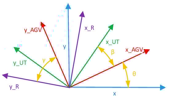 - The position and orientation of the AGV and the trailers in the inertial frame are known and are given by .