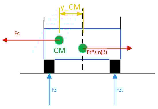 In order to study the capsizing conditions, it is interesting to show the forces from a frontal view of the AGV (Figure 29).