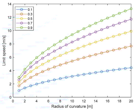 where is the radius of the plotted curve and is the friction coefficient. Based on this equation, it is easy to find a limit speed to avoid lateral slipping (43).