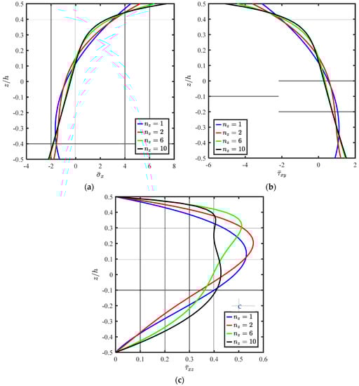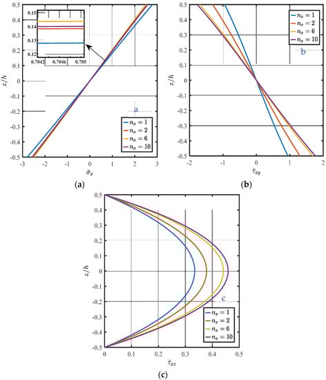 To consider the geometric middle surface of the plate, put as zero-valued ( in displacement and strain fields of Equations (1)–(18); where rigidities terms are obtained as functions of x as: