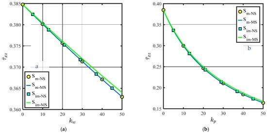 Shear stress of BDFG under uniform load at for different and . (a) For different . (b) For different .