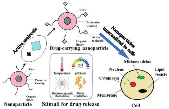 Drug delivery systems based on nanotechnology have improved the delivery of drugs due to their changes in pharmacokinetics, enabling a longer half-life of the drug in the bloodstream and reducing toxicity []. Magnetic nanoparticles play an important role in the diagnosis and treatment of diseases such as cancer, heart and neurological diseases []. These particles are often used in the targeted delivery of medically active substances because they deliver the drug to the desired place via tissue magnetic absorption or strong ligand–receptor interaction [].