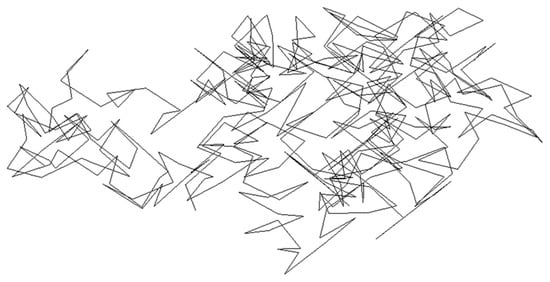 Fine tailoring of the Brownian motion can produce different desired effects, including tailoring of the time and amount of the drug release []. On the other hand, drug delivery systems based on micro/nanomotors have been designed to overcome the influence of the Brownian motion through the control of nanoparticles’ motion by some exogenous force (like external magnetic field) []. If the immobilization of nanoparticles increases, heating efficiency decreases []. How is this related to the confinement of the space within which the particles’ trajectories can appear (as in the case of path shown at Figure 8) has not been the study yet, even though there are some studies related to the nanoparticle motion in a cylindrical tube and associated effects of the boundaries, curvature, size and density of the particle, including the influence of the Brownian dynamics [] and transport phenomena in confined flows of nanoparticles []. Tuning of polymer amphiphilicity can increase the efficiency of drug delivery systems []. Amphiphilicity has direct influence on the particle collision modes, thus indicating that chaotic models of Brownian motion might exhibit patterns in particle trajectories for certain conditions.