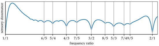 - Sethares, W.A. Local consonance and the relationship between timbre and scale. J. Acoust. Soc. Am. 1993, 94, 1218–1228. [Google Scholar] [CrossRef]