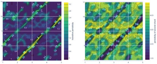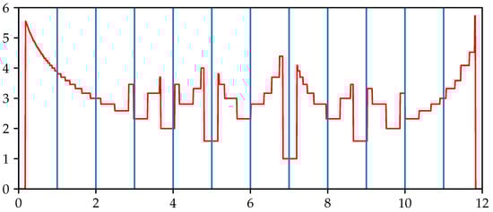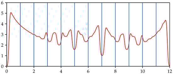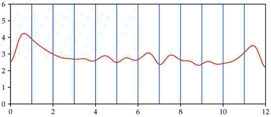 In the context of periodicity, Stolzenburg [] uses the JND of 1% and 1.1% or, equivalently, cent and cent. In [], a standard deviation of 3 cent has been used due to experimentally obtained frequency difference limens of supposedly 3 cent [], even though the value of 1% in [] corresponds to about 18 cent as we have just seen. Still, the fact that they used the standard deviation of 3 cent for the Gaussian smoothing is an interesting aspect that we will revisit in Section 4.4. It will be necessary to design experiments and perform further studies along the lines of [] to collect data for periodicity discrimination in the light of pitch and roughness correlations for tones within chords and between different chords, determine the best model and describe the dependency on noise [,,], which is beyond the scope of this work. Due to a lack of such a study, we will assume that cultural familiarity lets us associate slightly mistuned pitches with an ideal pitch and thereby detect and use the implied pitch for the perception of music.