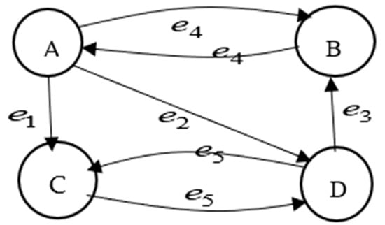 Let,and ifbe the undirected edge between vertices, then the edge is called a bidirectional edge if and only ifinstead of. In a similar manner,can be represented as a bidirectional edge (see Figure 2).