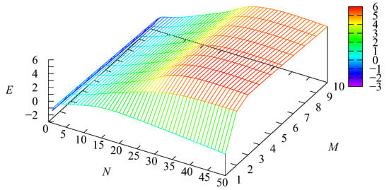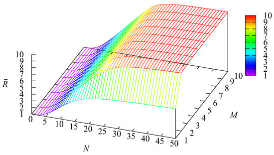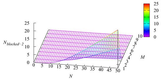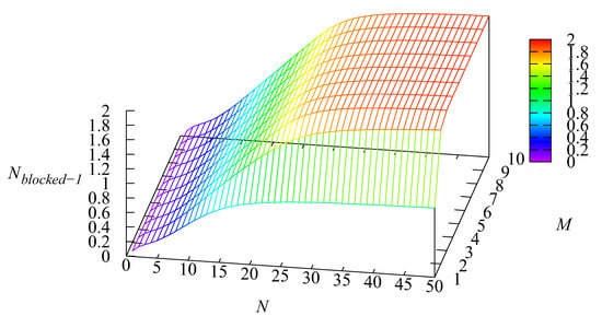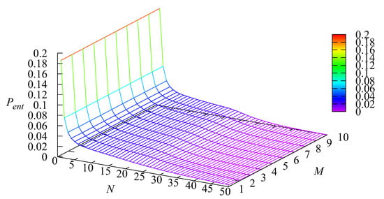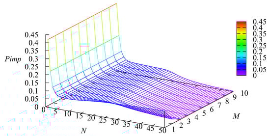 The dependence of the loss probability of an arbitrary customer due to impatience on the parameters N and M is presented in Figure 9.