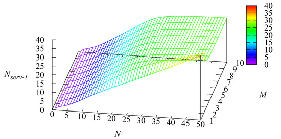 The dependence of the average number of customers in the buffer on the parameters N and M is presented in Figure 4.