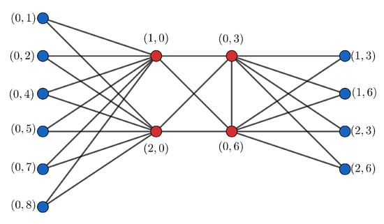 Now, if , , we have and . In order for the global offensive alliance condition to be met in these two vertices, the set S is required to contain at least vertices of and at least vertices of . In this way,