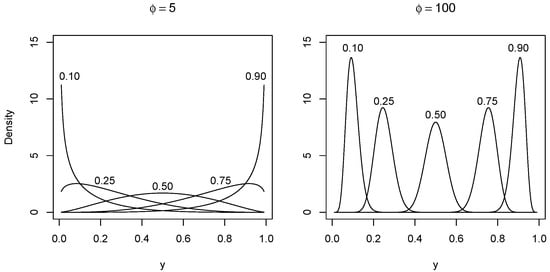 - Grün, B.; Kosmidis, I.; Zeileis, A. Extended beta regression in R: Shaken, stirred, mixed, and partitioned. J. Stat. Softw. 2012, 48, 1–25. [Google Scholar] [CrossRef]
