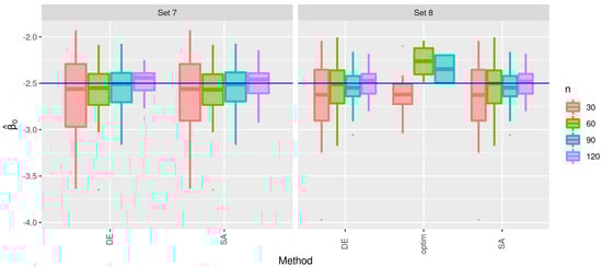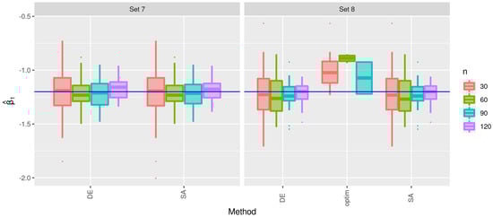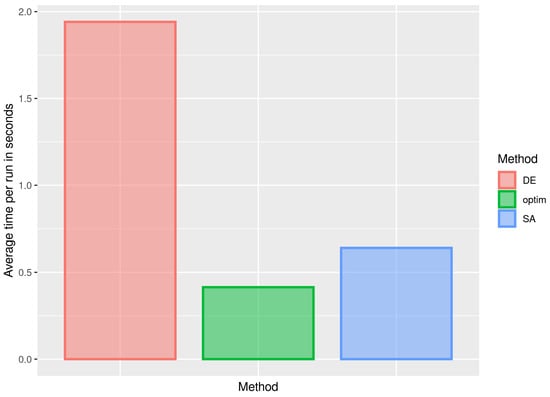 - Simulated annealing algorithm: This is a metaheuristic based on the thermodynamic annealing process that performs a probabilistic local search replacing the current solution with a solution in its vicinity, obtaining good solutions regardless of the chosen starting point. The GenSA function is available in an R package named GenSA [48]. A general strategy to improve the simulated annealing (SANN) algorithm is to inject noise via the Markov chain Monte Carlo algorithms (noise-boosted) to sample high probability regions of the search space and to accept solutions that increase the search breadth [49,50,51]. Another approach is based on hybridized search gradient methods or genetic algorithms for cases of difficulties in the convergence with SANN [52,53].