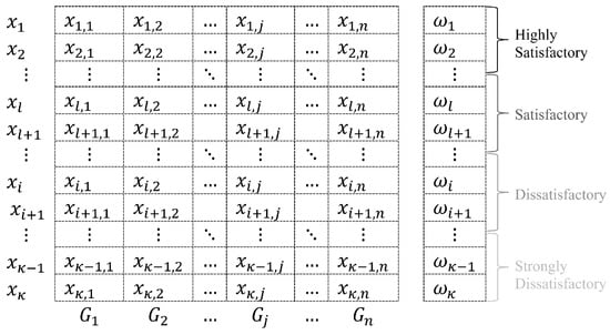 Then, Equations (24) and (25) are used to define the categorical credibility indices between an alternative x and the category .