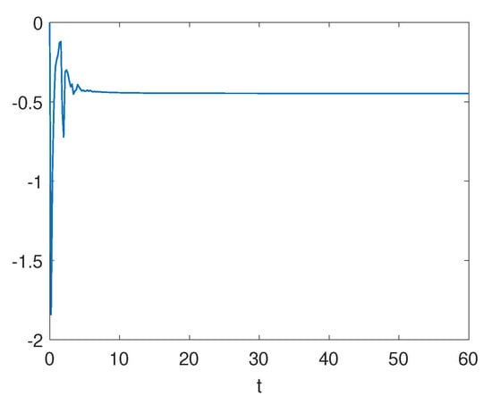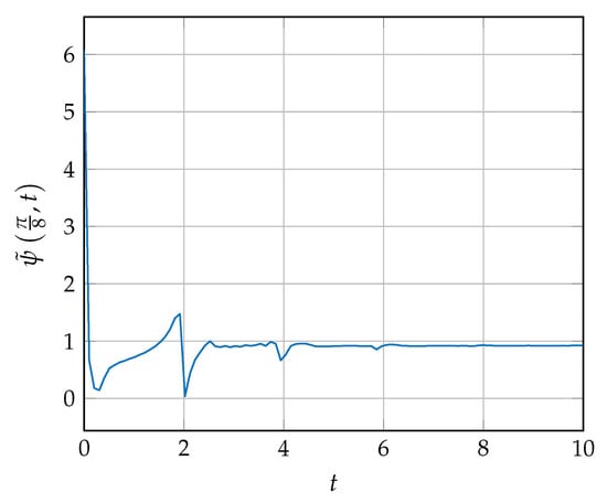 In this case, neither the analytical space-time solution nor the limit stationary solution in closed form, as in the previous cases, are known. In Figure 23, the Energetic BEM approximate solution, obtained at on using quadratic B-splines and fixing and , is shown.