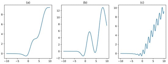 The plot of the SinLU activation function for different values of its parameters. The subplot (a) refers to a SinLU curve with ; (b) refers to a SinLU curve with ; (c) refers to a SinLU curve with .